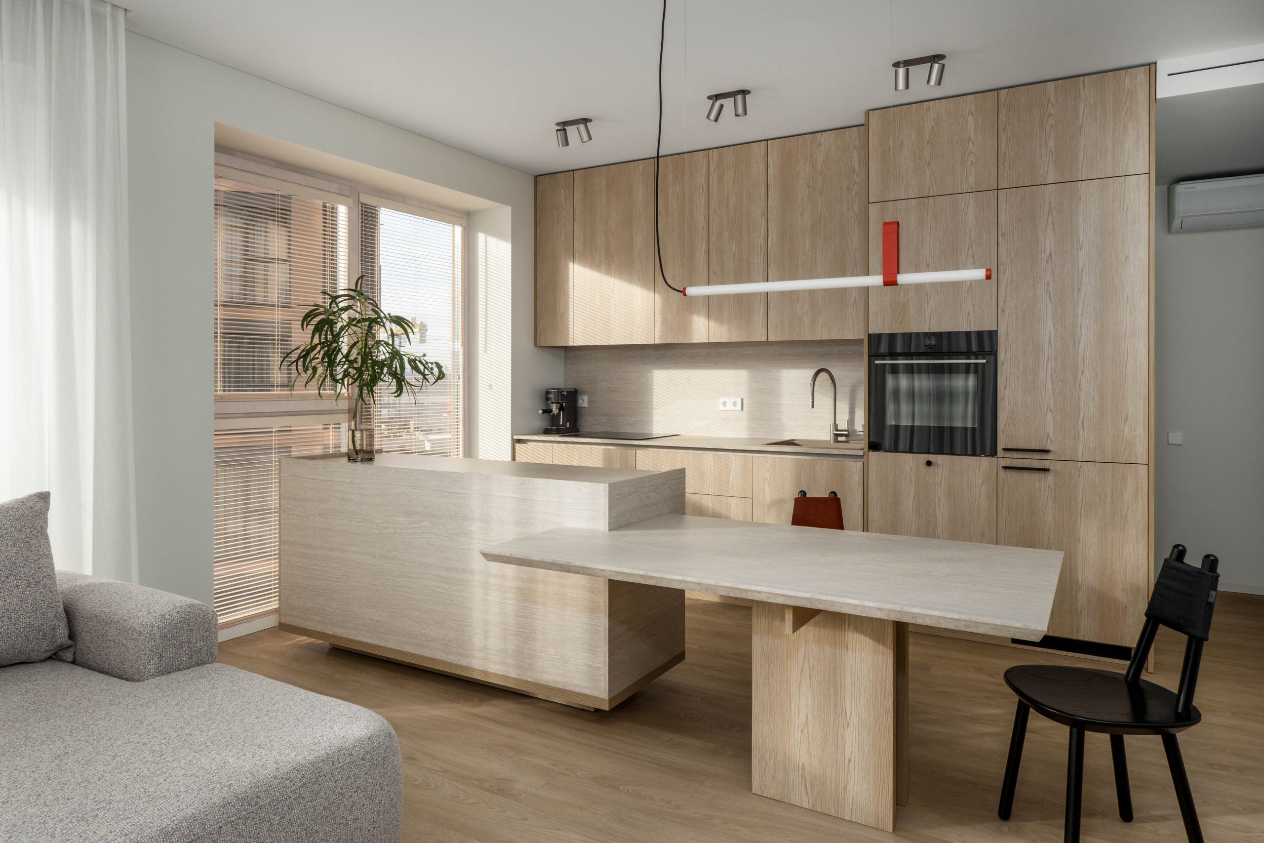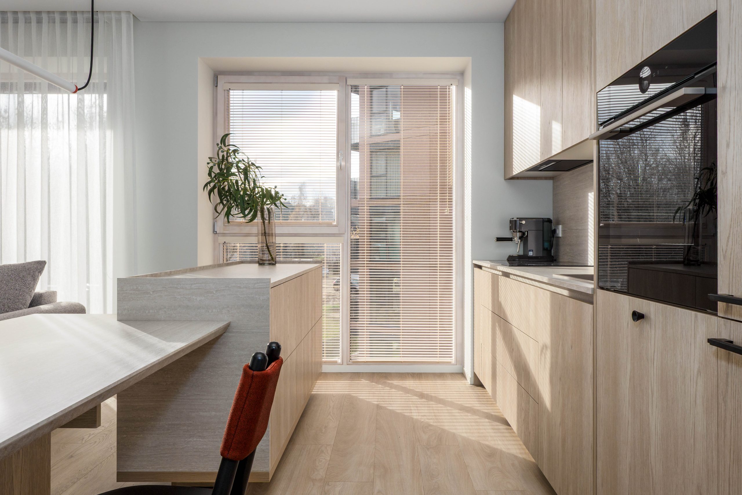 Dizainas įkvėptas japandi stiliaus, siekiant sukurti neperkrautą, šviesią ir jaukią erdvę. Kiekvienas vidaus apdailos etapas – nuo paruošiamųjų darbų iki detalių – buvo kruopščiai apgalvotas, kad erdvė taptų vientisa, patogi ir maloni naudoti.