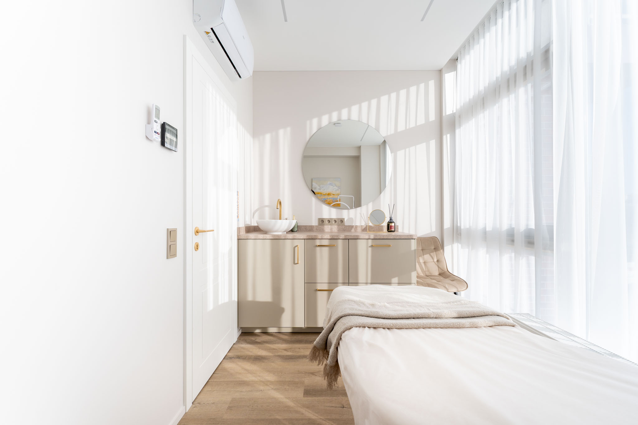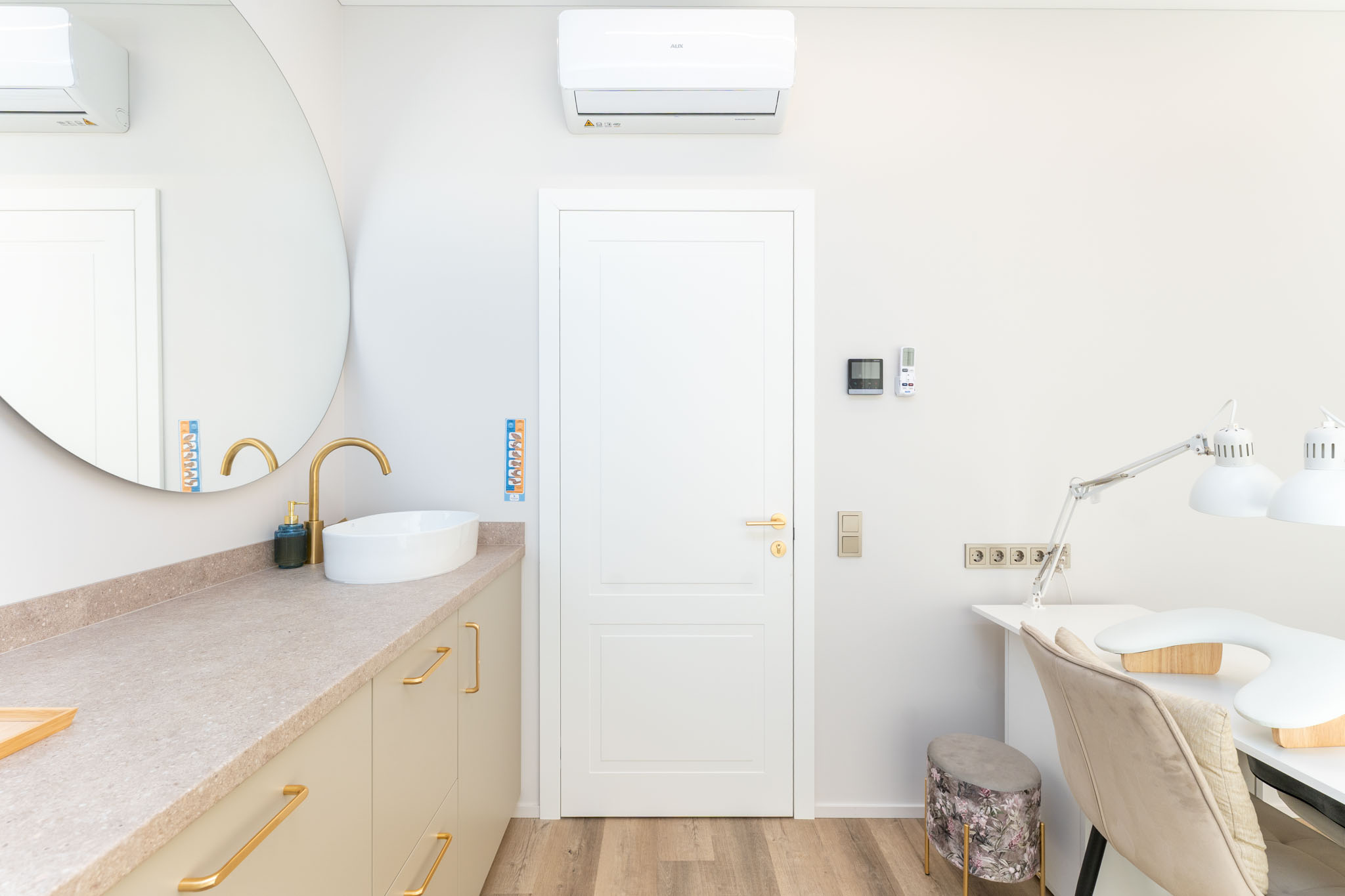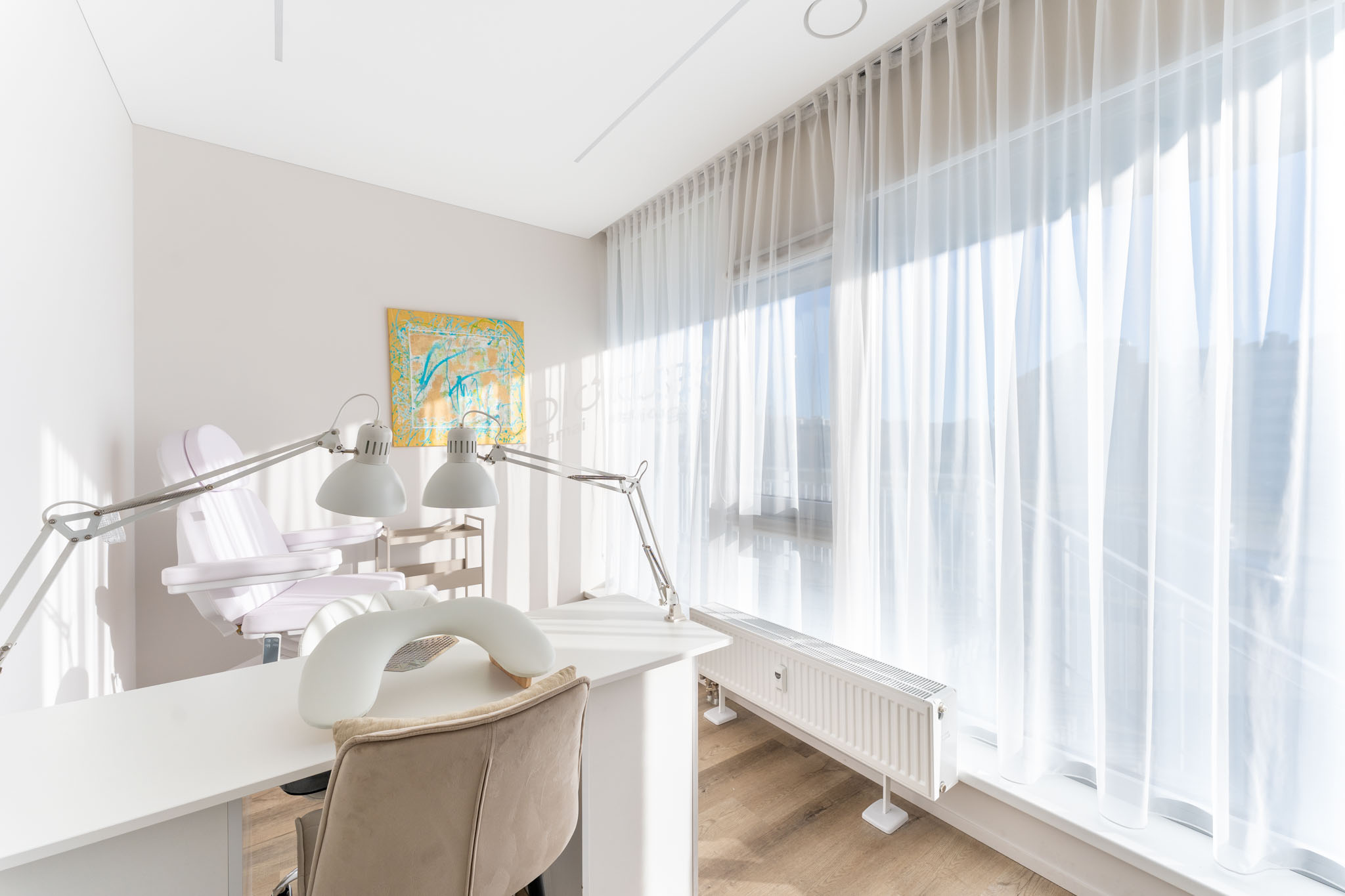 Kurdami šią erdvę siekėme subtilios estetikos, švarių linijų ir apgalvotų sprendimų, kad patalpos būtų ne tik profesionaliai veiklai pritaikytos, bet ir jaukios, kviečiančios jaustis komfortiškai.
